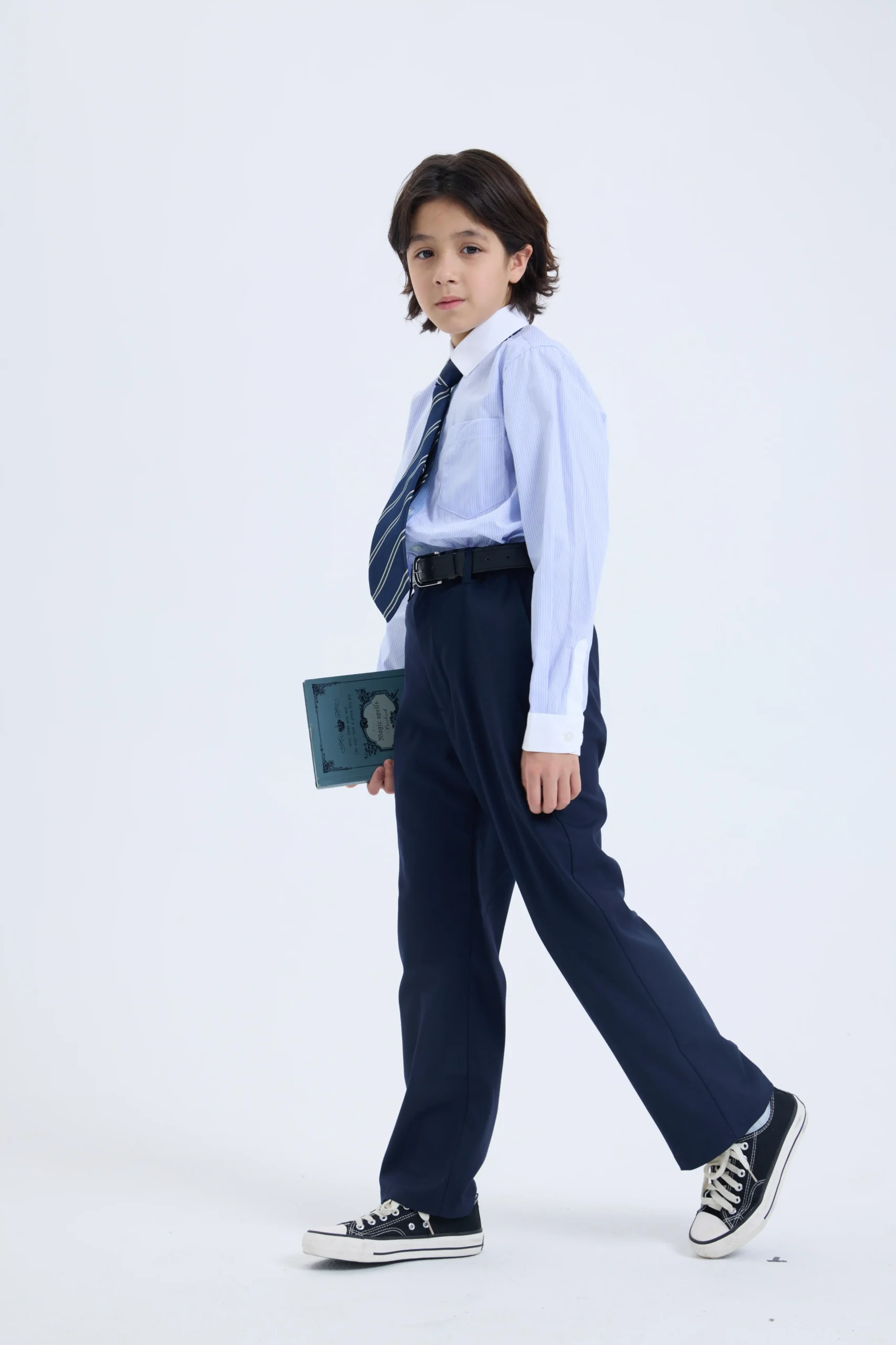 These long pants are ideal for school uniforms, academic programs, and extracurricular activities where both style and function are required. They are suitable for daily classroom wear, school events, or formal presentations, providing students with a polished and professional appearance. The slightly elastic and breathable fabric ensures comfort during active school routines, allowing children to move freely without restriction. Additionally, the practical pocket design supports everyday functionality, making it easy to carry small items like pens, notebooks, or cards. With their durable construction, classic tailoring, and thoughtful fit adjustments for different age groups, the Academic Boys’ Long Pants are a reliable choice for parents and schools seeking uniform pants that combine elegance, practicality, and long-term wearability.