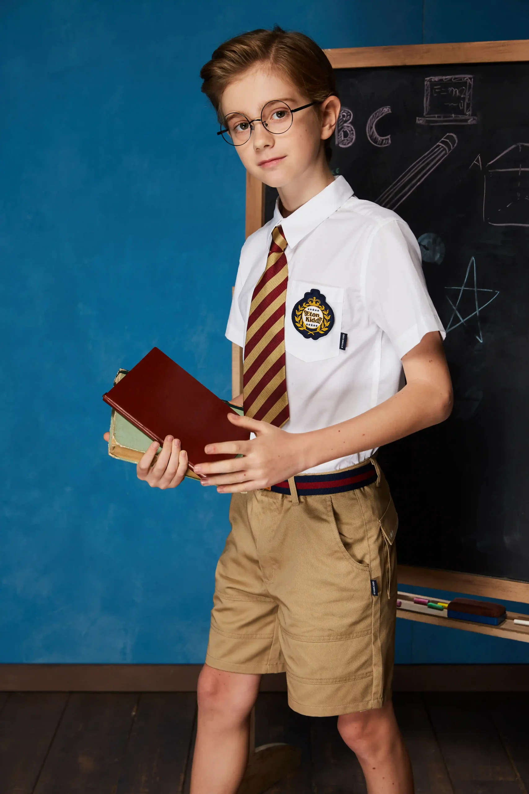 Attention to detail defines the design of the Academic Boys’ Short-Sleeved Shirt. The pointed gentleman collar reflects traditional academic styling, lending a refined touch that elevates the overall look. Ergonomic back pleats are carefully integrated to provide greater flexibility and comfort, ensuring that children can move freely in both classroom and outdoor settings. The shirt also features an asymmetric chest pocket, a distinctive element that adds individuality while remaining understated enough for schoolwear. Custom engraved Eton buttons highlight the brand’s craftsmanship, offering both practicality and a premium finish. Completing the product are a hangtag and a care label, reinforcing professionalism and market readiness for retailers. Each design element has been thoughtfully considered to create a shirt that balances style, comfort, and functionality, making it appealing to both end users and wholesale distributors.