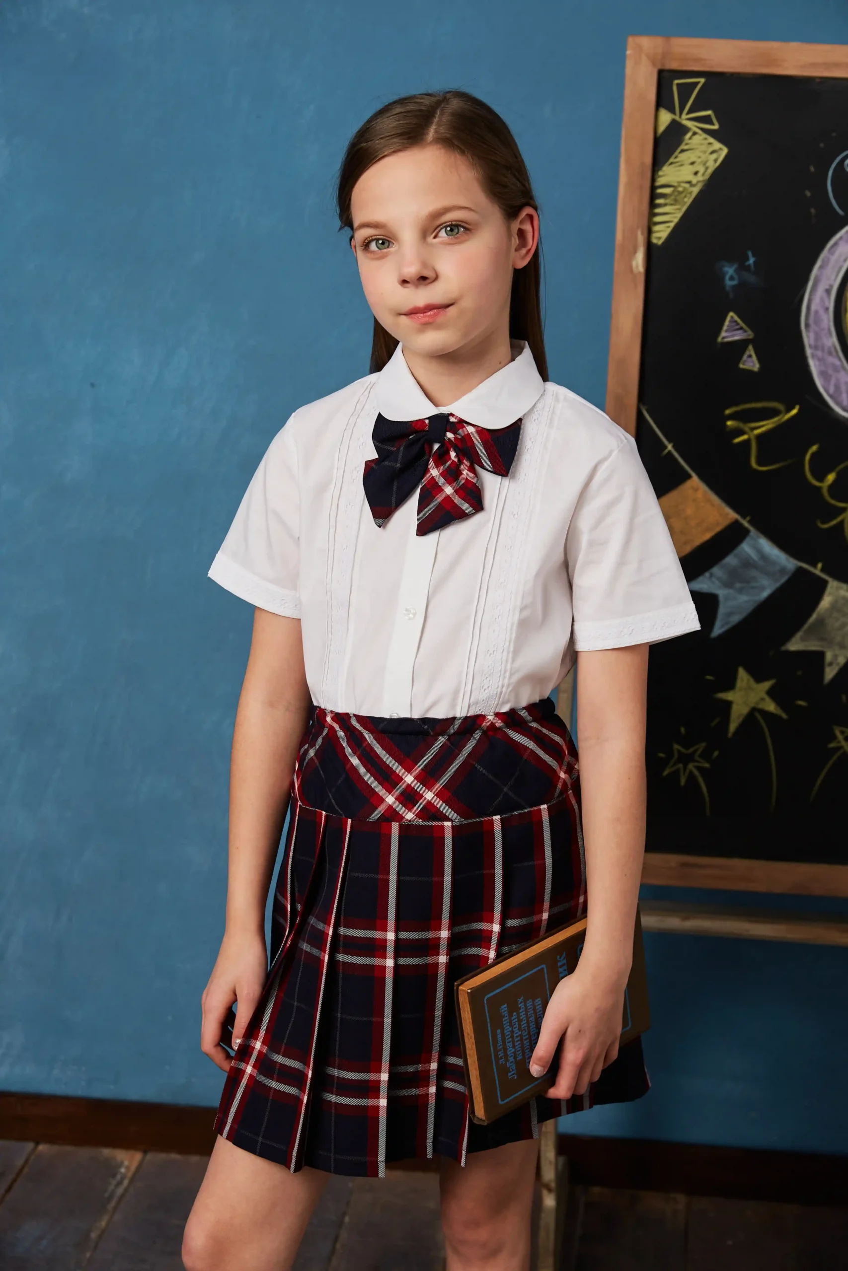 The British Academy Girls’ Lace-Trimmed Short-Sleeved Shirt is designed to meet the demand for versatile apparel that balances academic elegance with modern practicality. Drawing inspiration from traditional British schoolwear, the design incorporates preppy elements such as the Peter Pan collar and lace trim, while adding contemporary details like decorative bows at the cuffs. This creates a garment that feels youthful yet refined, making it suitable for a wide variety of customer groups. For buyers seeking products that can transition smoothly from school settings to leisurewear, this shirt provides an ideal solution. Its thoughtful design ensures broad market appeal, serving both institutional needs such as uniforms and lifestyle retail that values timeless styling.