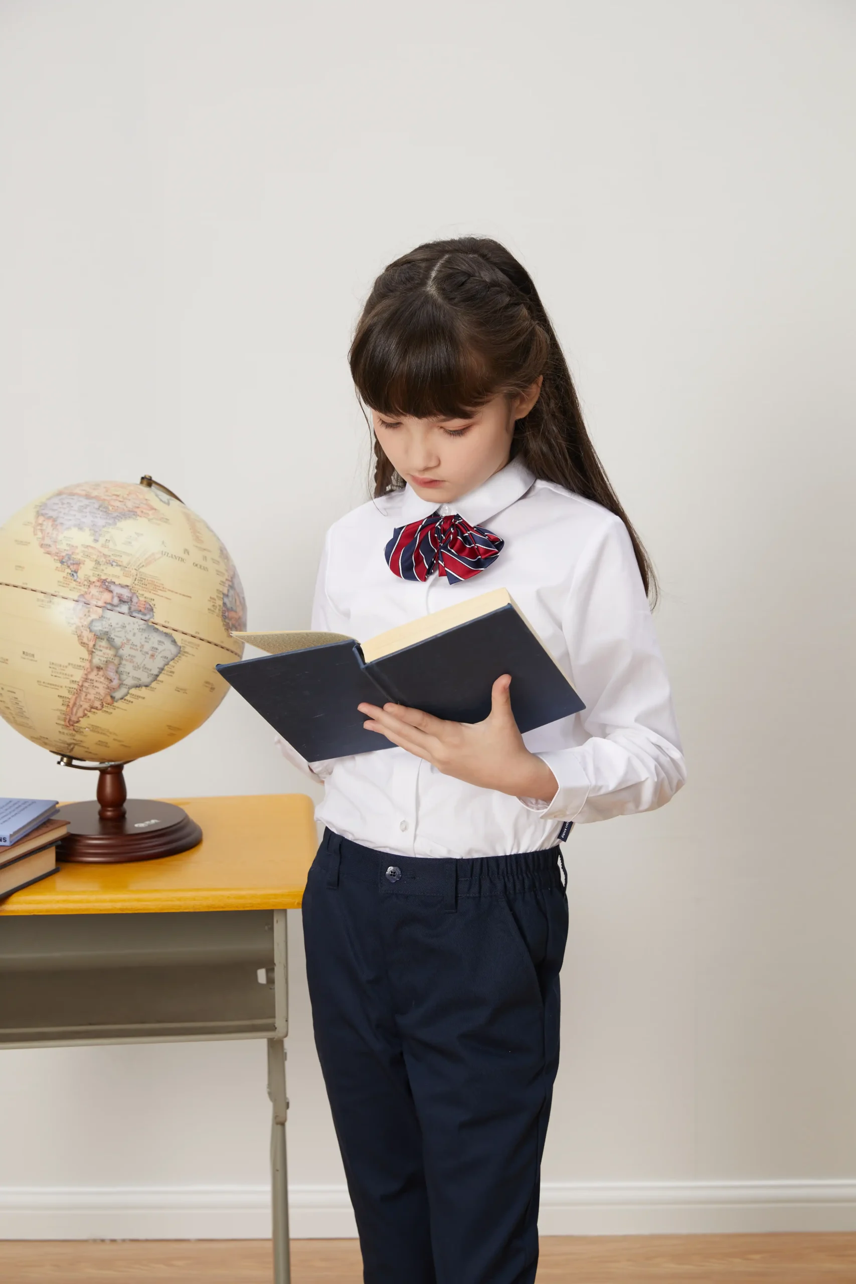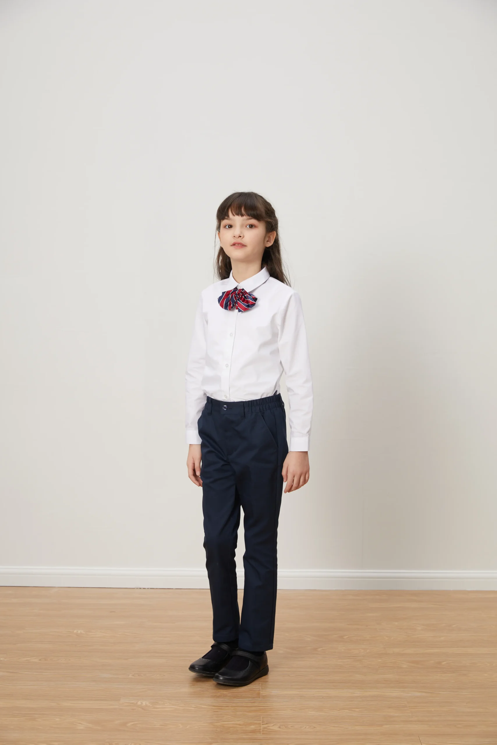 British Academy Girls’ Polar White Wrinkle-Resistant Long-Sleeved Shirt