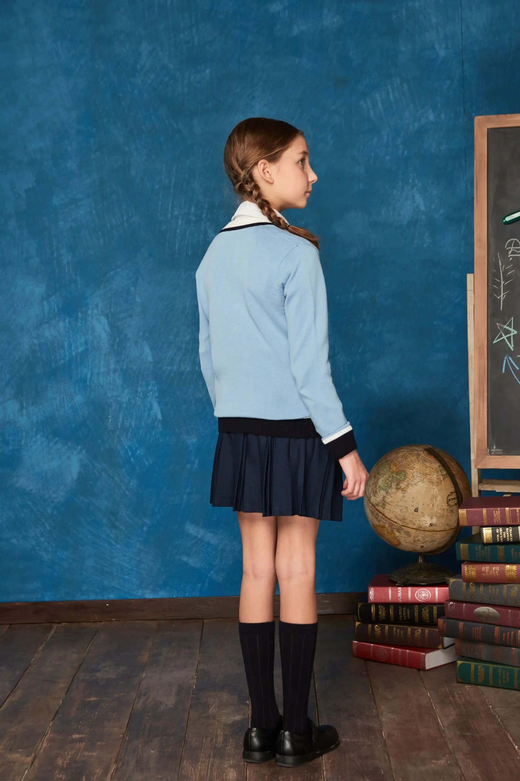 This sweater is perfect for academic environments, including schools, colleges, and campuses, where a combination of style, comfort, and practicality is essential. It can be worn as part of a school uniform or as a standalone layering piece for casual occasions. The subtle inner stripe detailing and contrasting neck accents give the sweater a preppy, collegiate vibe, making it ideal for both formal and semi-formal settings. Beyond school or campus wear, the British Academy Knit Sweater is suitable for weekend outings, casual office environments, or family gatherings during cooler months. Its structured yet soft construction ensures warmth and comfort, while its classic design maintains a polished, sophisticated appearance that is universally appealing.