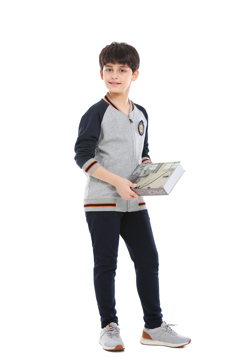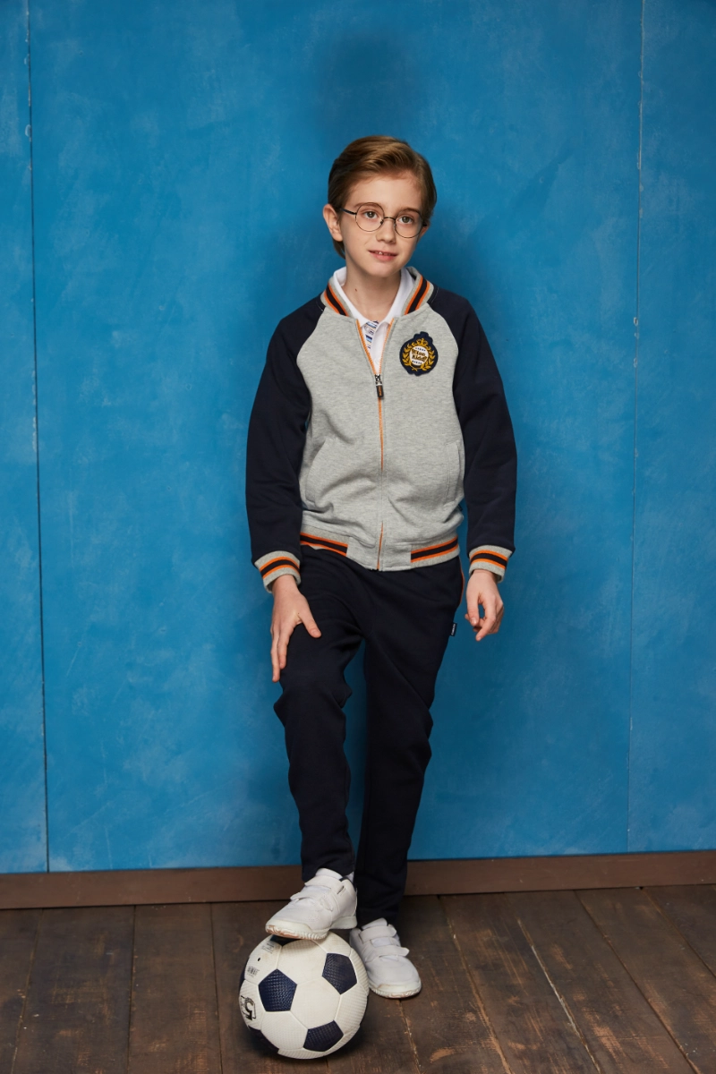 The British College Knitted Sports Suit is a modern interpretation of the classic collegiate tracksuit, offering both style and functionality. Designed with young wearers in mind, it balances athletic performance with everyday versatility, making it equally suitable for school, casual outings, and light outdoor activities. The set consists of a ribbed stand-collar baseball jacket and coordinated track pants, designed to be worn together as a cohesive outfit or separately for added flexibility. Its contemporary cut, durable fabric, and carefully considered details reflect the enduring spirit of collegiate style with a sporty twist.