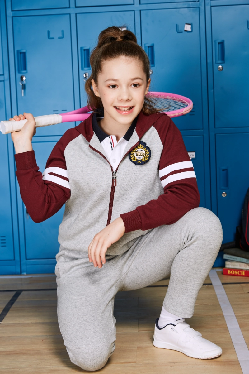 The British Collegiate Sportswear is a thoughtful blend of British academy aesthetics and functional sportswear design. Part of the British Light Outdoor Series – Casual Sports Collection, it draws inspiration from the principles of integration, structure, and balance. This collection encourages children to engage with the outdoors, fostering adaptability, confidence, and essential survival skills. The hooded design, color-block stripes, and front zipper of the top provide both style and practical protection, making it suitable for school sports, casual wear, and outdoor adventures. The pants complement the top with a streamlined, comfortable design, promoting ease of movement while maintaining a refined, preppy appearance.