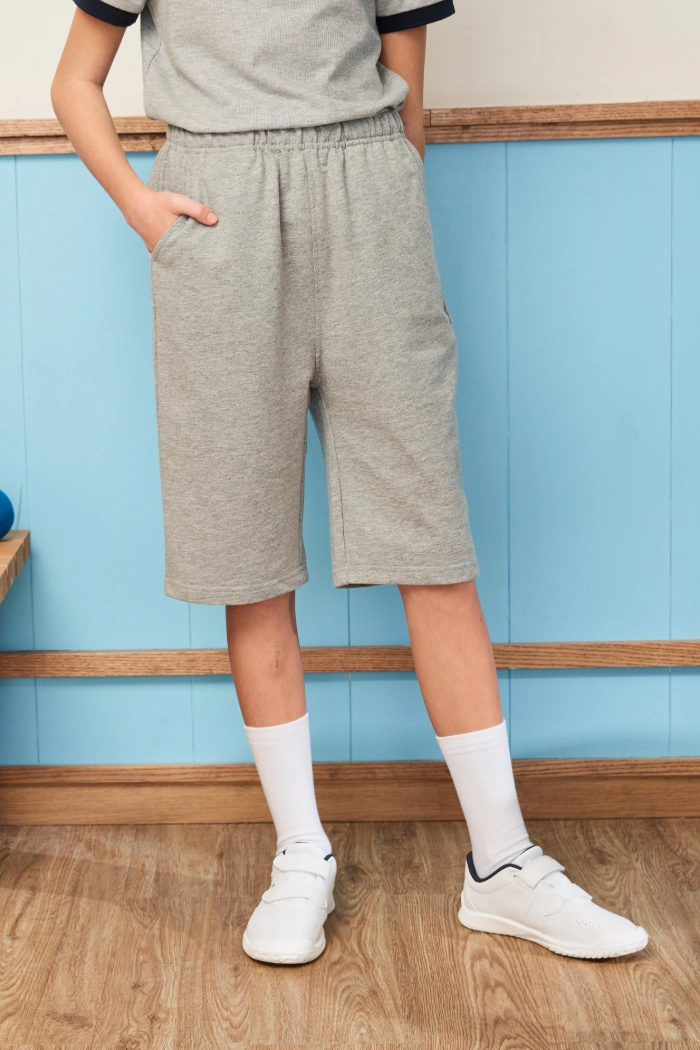Crafted from high-quality knit terry fabric, the shorts feature a cotton-polyester blend that is soft, breathable, and moisture-wicking. The fabric’s slightly stretchy texture allows unrestricted movement, perfect for dynamic play and active sports. The dense knit construction ensures durability while maintaining its shape after repeated wear and washing. This fabric combination is resistant to deformation and fading, ensuring the shorts remain stylish and functional over time. Precision stitching and reinforced seams contribute to the garment’s overall durability, supporting the rigorous demands of children’s active lifestyles. The shorts’ design balances a structured appearance with comfort, allowing children to move freely while looking effortlessly stylish.
