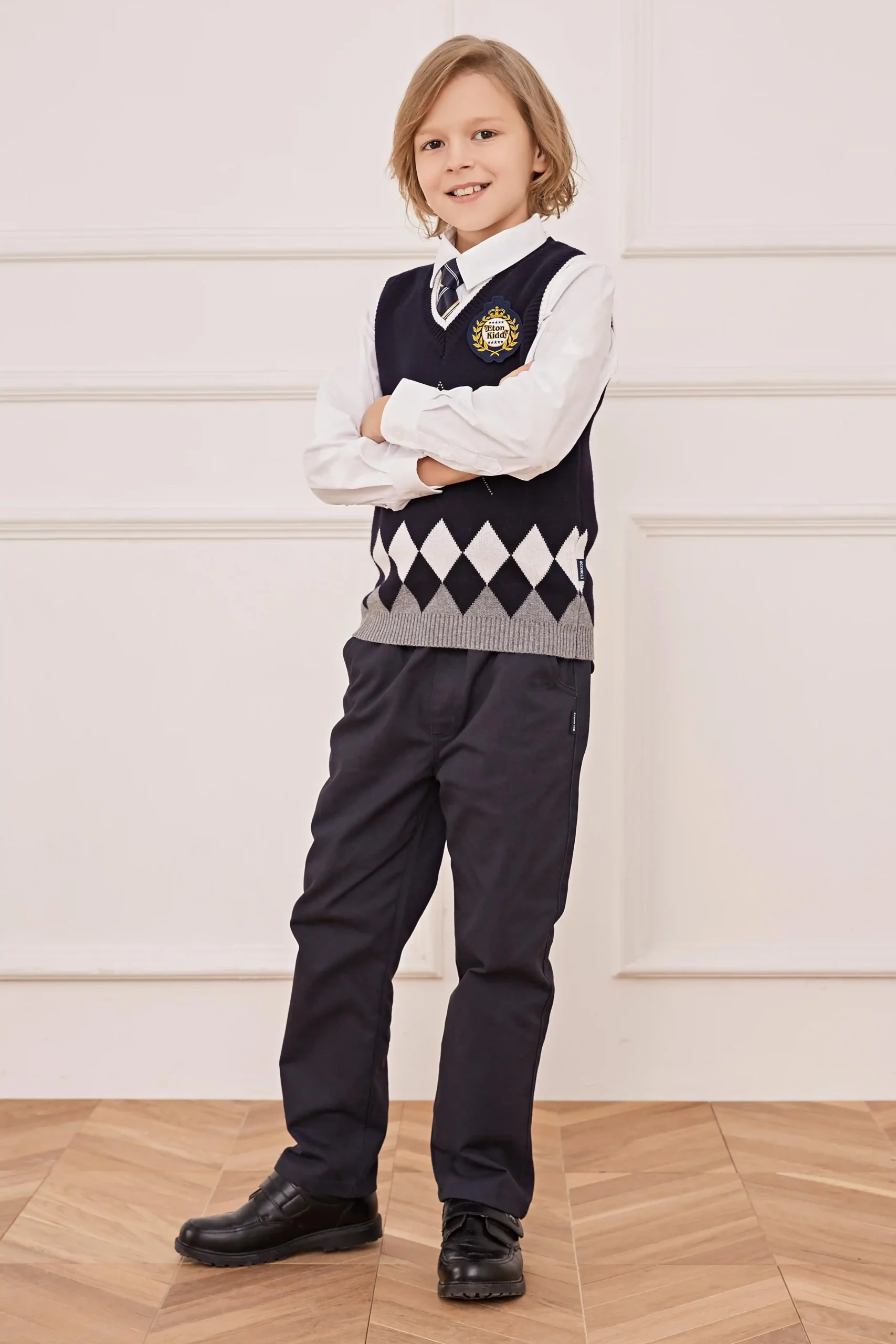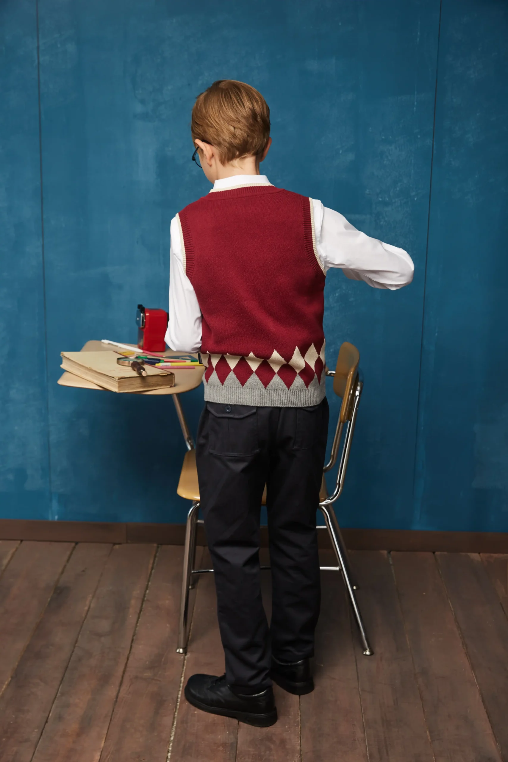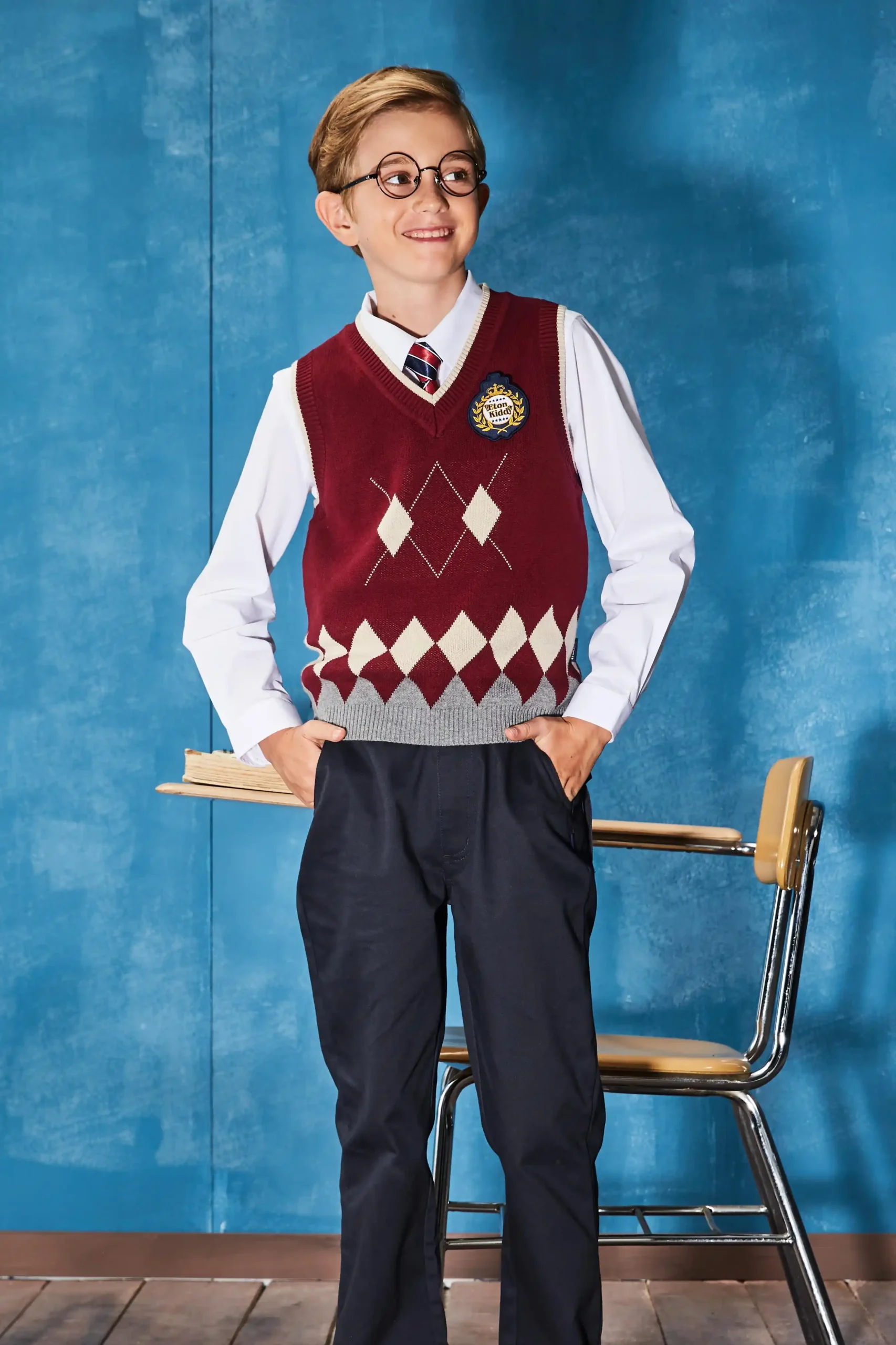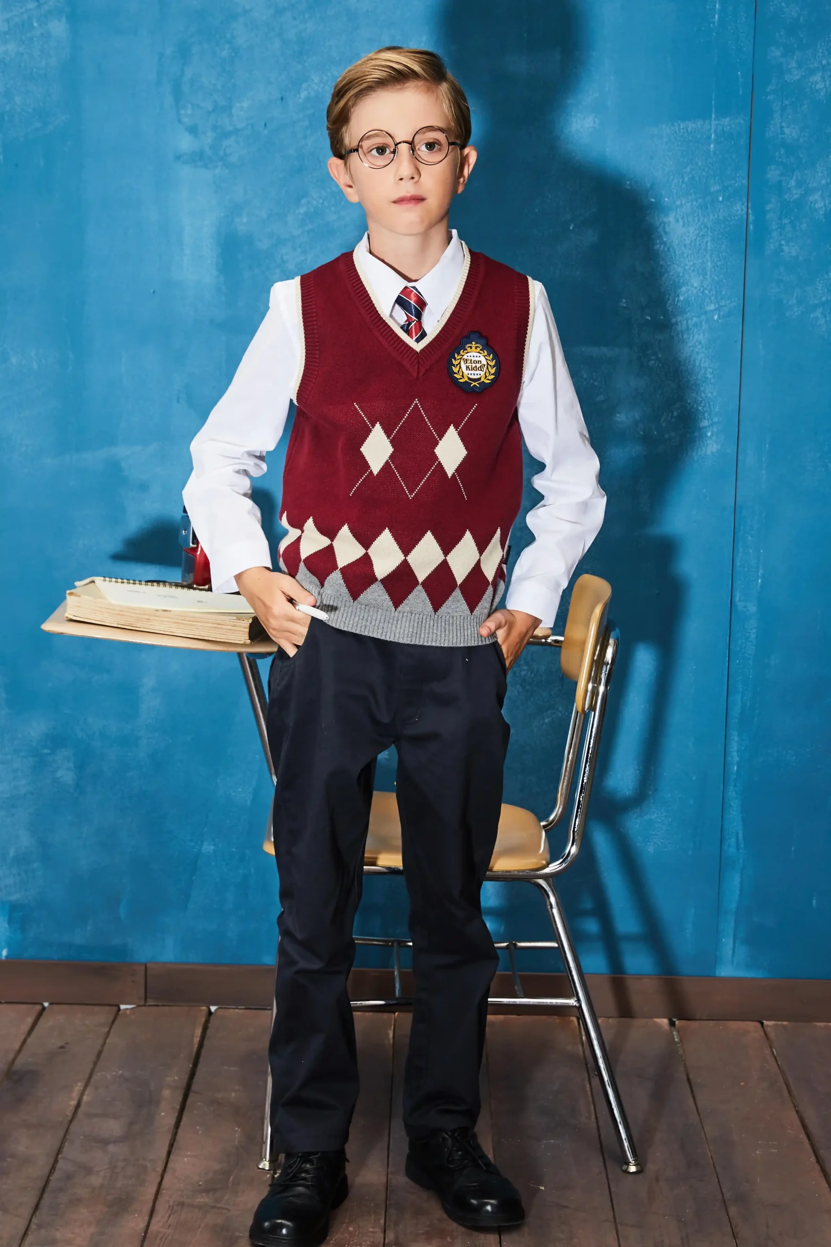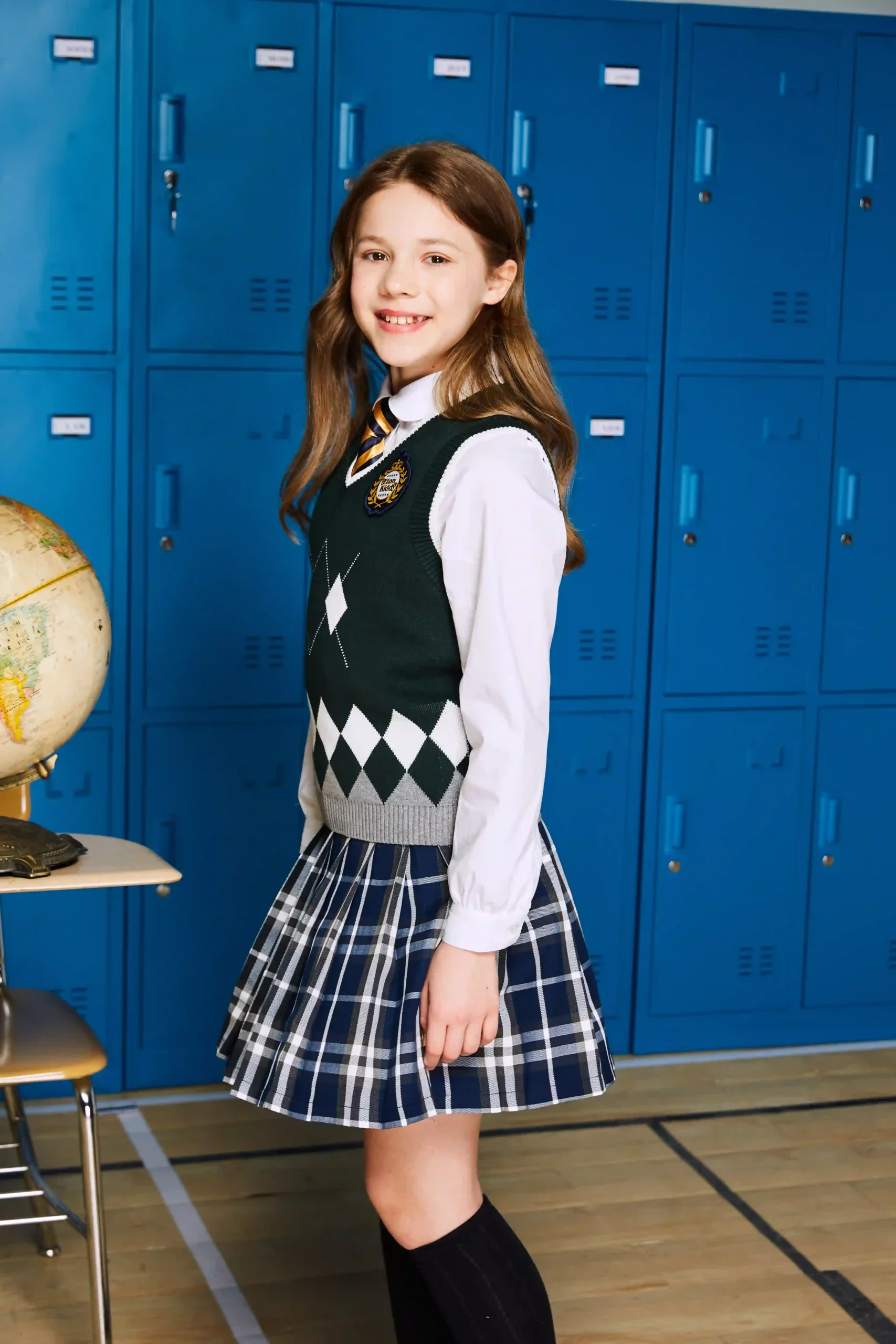 Perfectly suited for campus life, casual office settings, or semi-formal events, the Collegiate Argyle Vest can be layered over shirts, blouses, or light tops to achieve a refined preppy look. It pairs effortlessly with skirts, tailored trousers, or chinos, providing a versatile option for both students and young professionals. Its combination of comfort, durability, and classic design makes it a staple in a modern wardrobe, ideal for classroom environments, study sessions, casual outings, and campus activities, while maintaining a fresh, stylish, and polished campus silhouette.