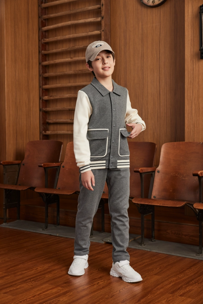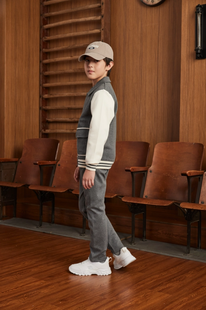 Constructed with air-layer cotton fleece, the fabric blends cotton and polyester for a skin-friendly, breathable material that feels soft against the skin while allowing adequate ventilation during active play. The slight stretch in the material ensures unrestricted movement, accommodating a full range of motion from climbing and running to general sports activities. The fabric is lightweight yet resilient, maintaining its shape and color even after repeated washes. It offers warmth for cooler days without causing overheating, and its easy-care nature ensures that it remains practical for everyday use. The combination of breathable cotton and durable polyester creates a versatile garment that balances comfort, style, and performance for dynamic children.