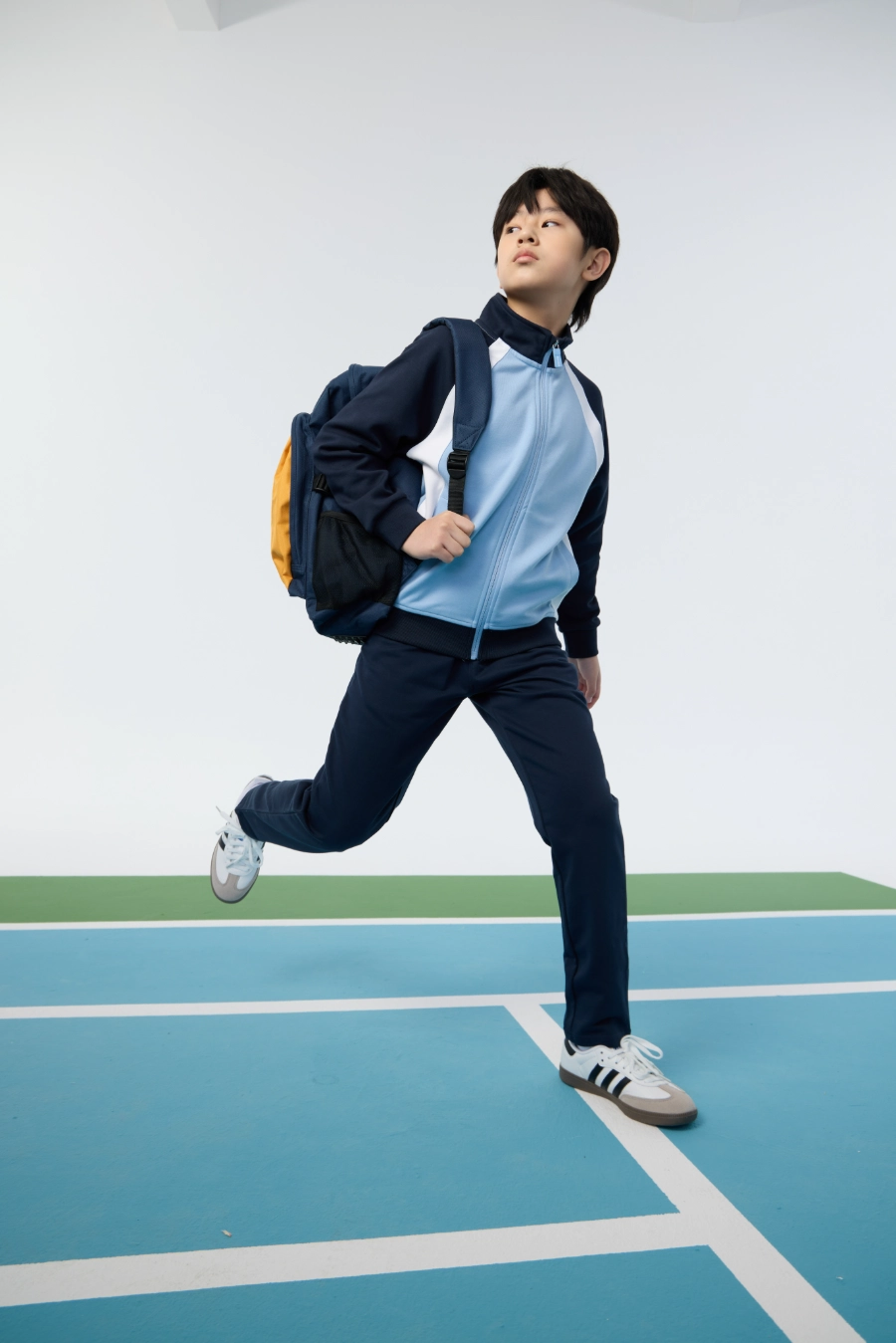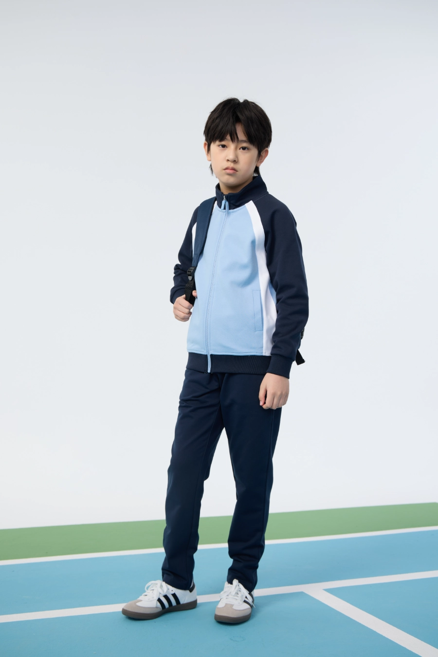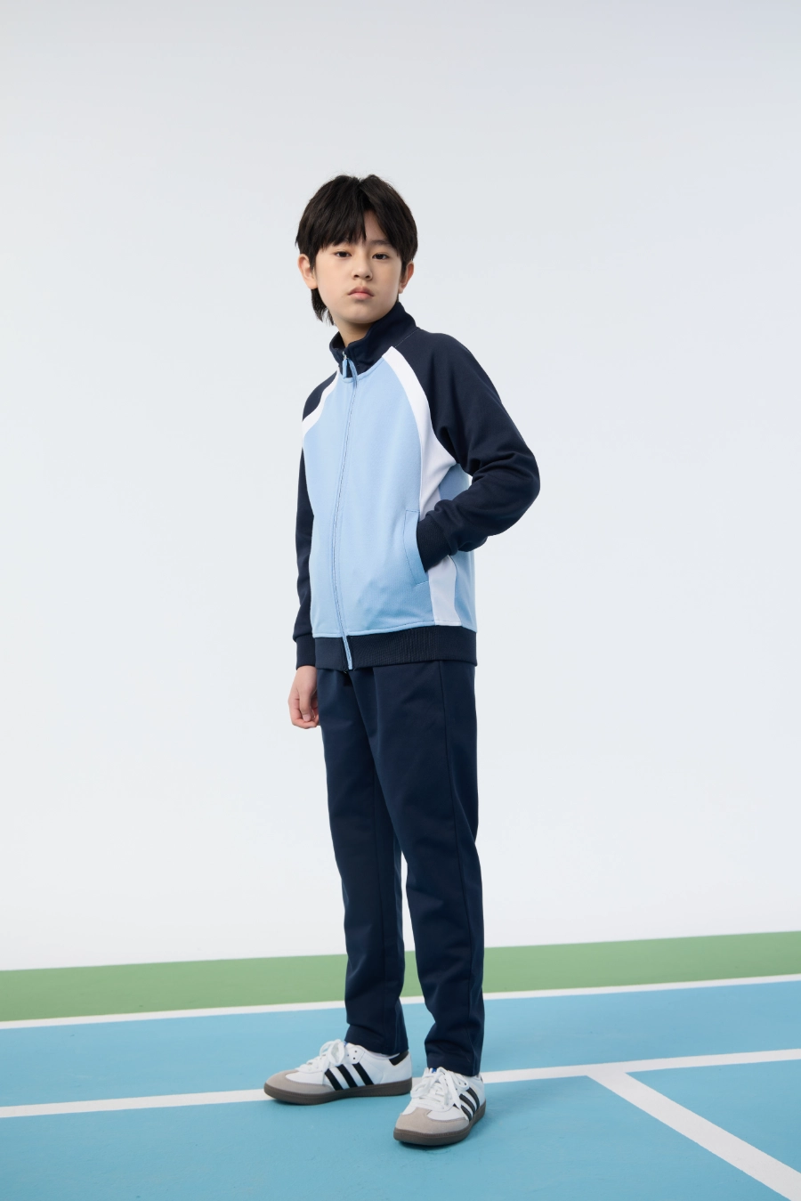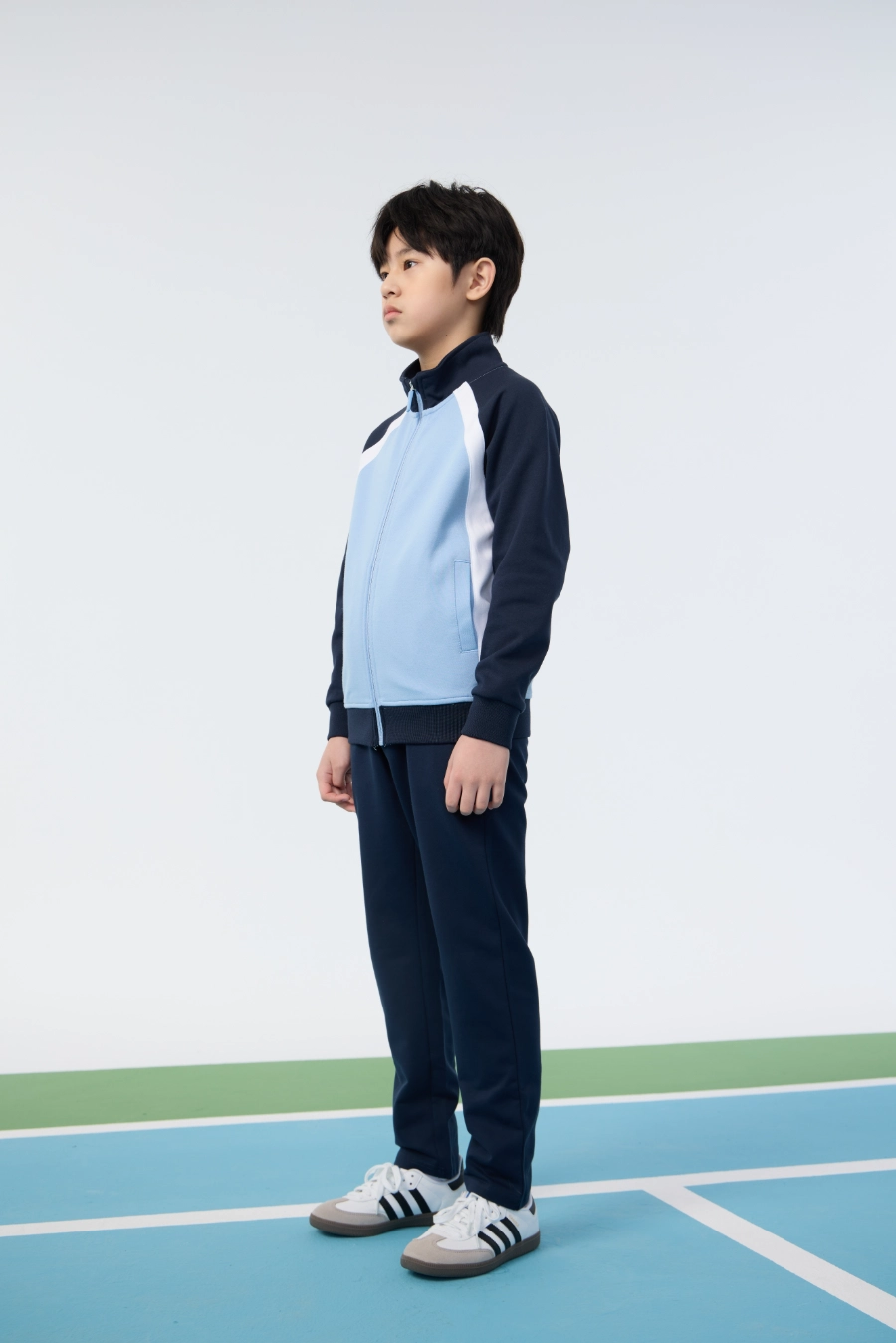The Collegiate Knit Sport Top is ideal for a wide range of settings and activities. It is perfect for school sports, playground games, outdoor exploration, casual athletic events, and day-to-day wear. Its lightweight, breathable, and slightly stretchy construction ensures comfort and mobility during physical activity. The stand collar and windproof hem offer protection against cooler weather, while the symmetrical side pockets provide practical storage solutions. Vibrant contrast color blocking and collegiate-inspired design make the top suitable for social occasions, recreational outings, and layering with other clothing. Overall, this top is designed to combine function, style, and versatility, supporting children in both active pursuits and everyday life.